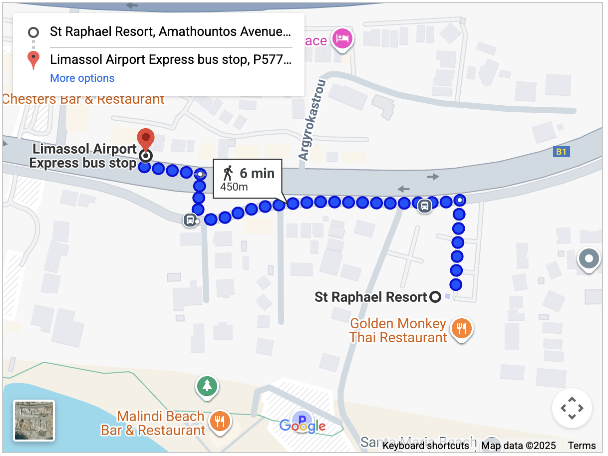 Airport Bus stop is just opposite St. Raphael Resort. This stop is only availble when coming from Larnaca Airport